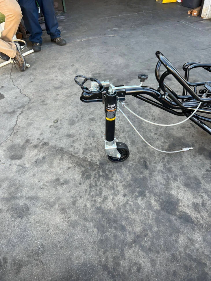 This Motorcycle Trailer Jack Stand is designed specifically for Tow Smart trailers. It features an original quick-connect removable trailer jack stand with a swivel wheel for easy maneuverability. The custom bracket is made specifically for this trailer jack stand and cannot be purchased independently. This jack stand offers a big upgrade from the standard trailer jack stand, allowing for more reliable transportation of motorcycles. Its swivel wheel increases versatility, meaning you can turn or move the trailer in any direction with ease. Experience the convenience and efficiency of this top-of-the-line Motorcycle Trailer Jack Stand.
